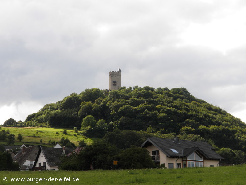 Die Burg wurde um 1050 auf einem 470 m hohen Vulkankegel hoch über dem Brohltal gebaut.