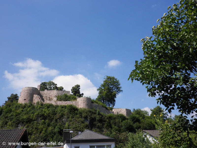 Kasselburg, ca. 4,2 km entfernt. Gerolstein in Richtung Pelm verlassen und in Pelm links in die Hauptstraße (K33) abbiegen. Der K33 nun bis zur Kasselburg folgen.